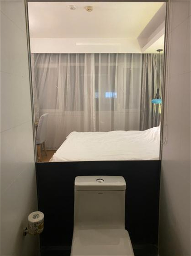 更加讓我覺(jué)得震驚的是:住過(guò)的其中一個(gè)酒店給玻璃墻做了卷簾,但萬(wàn)萬(wàn)沒(méi)想到的是,卷簾設(shè)計(jì)在衛(wèi)生間外面!對(duì),就是你想的那樣,外面的人可以直接在衛(wèi)生間外面把卷簾拉上去,OMG!這到底是為了什么惡趣味?