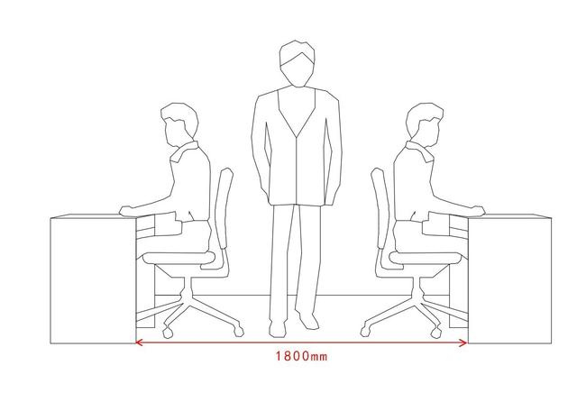 6.2.1 辦公室的通道尺寸不應少于0.9m,滿足兩個人正面和側面同時通過。